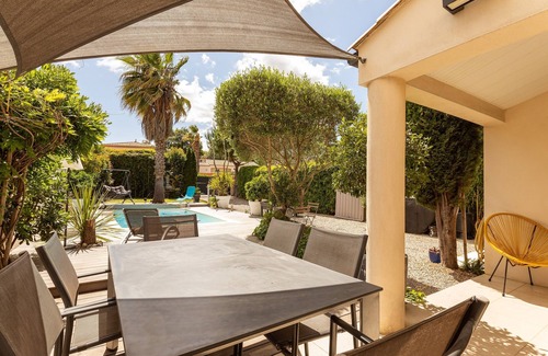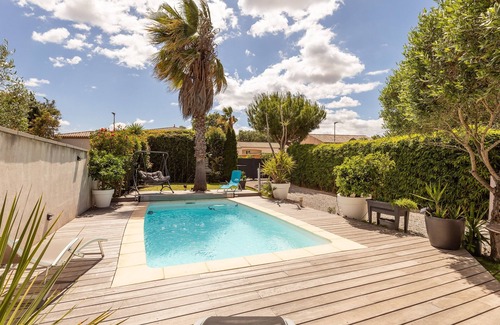Cocoonr/Book&Pay offers you in Maraussan, we offer you this charming air-conditioned house between the sea and the mountains, with a private swimming pool. It has a surface area of 106 m² and can accommodate up to 6 people. It has a lovely 46 m² living room, a fully equipped kitchen, three bedrooms, two bathrooms (with shower and bath) and a garden of around 465 m². Wifi included, we're waiting for you!