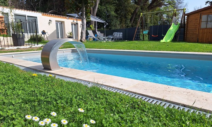 The garden consists of a swimming pool 7 by 3 by 1m40 protected by a wrought iron fence and a curtain of protection (a discharge will be asked to each customer and for each stay).