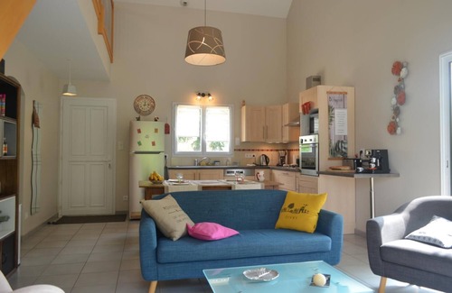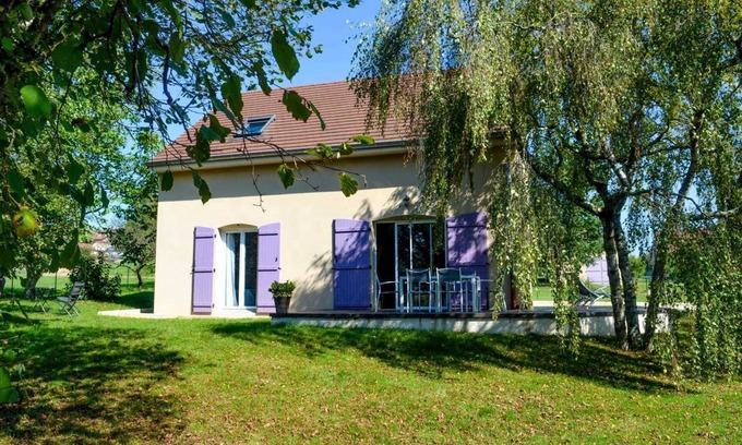 Valérie & Olivier welcome you to a charming contemporary "country" house (neighboring their own home on the same property, completely independent) located in a quiet residential area, a stone's throw from the pedestrian center of the picturesque medieval village of Saint-Gengoux-le-National (5 minutes on foot) as well as the surrounding nature & rolling countryside, a succession of vineyards, wild forests & bucolic groves. Nestled in the heart of unspoilt countryside on a hillside overlooking the verdant Grosne valley, under the wooded ridges of the surrounding hills & the vineyard slopes that dominate the village, this charming wine-growing, typical & commercial town, nestled "in a cluster" around exotic cobbled streets, has many shops & services and enjoys a rich historical heritage (12th century Romanesque church, 15th century Benedictine priory, 13th century keep, medieval tower & ramparts, remains of a fortified castle, several listed medieval residences, 19th century impluvium washhouse, etc.). Very comfortable gîte. Spacious & bright. Beautiful living room with an imposing "cathedral" volume. Warm contemporary character. Zen & very gentle atmosphere. Large shaded & exposed terrace (25m²), opening onto a pleasant lawned & wooded garden of 1200m² (hazelnut trees, apple tree, cherry tree, walnut tree / picking possible during the stay), offering a beautiful view of the surrounding countryside. Composition: Detached house next to the owners' house (total independence). Wifi. Heat pump heating. Duplex gîte. Ground floor: living room-kitchen-lounge, 1 bedroom (double bed 160x200cm), bathroom (shower), separate PMR toilet. 1st floor: mezzanine games area-lounge (1 convertible 140x190cm as an extra), 1 bedroom (2 single beds 80x200cm which can be twinned into a double bed 160x200cm), separate toilet. Terrace (25m²) + garden (1200m²) + bicycle storage + private parking. Supermarket at 300m. Shops at 600m. Electric vehicle charging stations at 300m