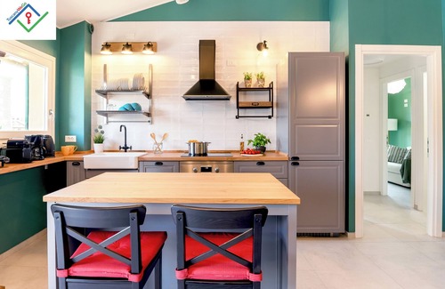 Perfect for families or business travelers, it accommodates up to 5 guests and offers all the comforts: fully equipped kitchen, two bedrooms, terrace, Wi-Fi, A/C, washing machine, and free parking.