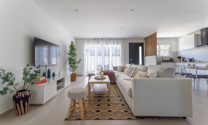 In the commune of Lunel, the Cocoonr/Book&Pay agency offer this charming 96 m² air-conditioned house with swimming pool for rent, which can accommodate up to 6 travelers. It includes an attractive 40 m² living room, a fully-equipped kitchen, three bedrooms, a shower room and a 100 m² garden. Wi-Fi (fiber optics), bed linen and towels included, we're waiting for you!