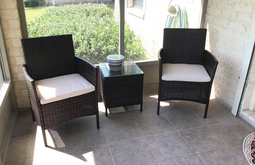 Spend your next getaway at this beautiful Casita at the South Padre Island Golf Course. This Casita is a 2 bedroom ,2 bath with 1 car garage with 990 sq. ft duplex style unit . It has a patio screened deck with tiled porch and outside furniture and a gas barbecue grill where you can sip your morning coffee and enjoy the sunrise. This Casita includes everything but you and your guest. You will find that this community is a quiet, peaceful, friendly and relaxing place to be with a short drive to the beach on South Padre Island. Entertainment amenities are , 55" Smart Flat Screen Smart TV and Guest bedroom 40" Smart TV ith wifi access. It has central air conditioning, central heating, in unit laundry machines, parking and much more. N