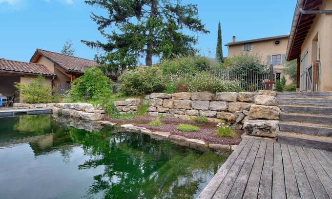 Welcome to La Petite Escale, your haven in Trévoux. Here, everything invites you to relax and savor the moment together. Nestled at the gateway to Dombes, this stay will also be an opportunity to discover a town with a rich history. The former capital of the Principality of Dombes, it captivates visitors with its medieval streets, half-timbered houses, and artists' studios. The "Trévoux, Capital of Dombes" discovery tour takes you through its historic monuments. A short walk away, the banks of the Saône offer beautiful walks or bike rides, all in a peaceful, green setting. Extend your outing with the Voie Bleue (Blue Way) for a sense of serenity and escape along the water. For a cultural outing, Ars-sur-Formans boasts a tourist and spiritual appeal that draws visitors from all over the world thanks to the sanctuary of the Saint Curé d'Ars. Looking for nature? Extend your discovery with the Dombes ponds, their authentic landscapes and birdlife. A truly unspoiled natural setting with a park in Villars-les-Dombes. During your stay at the cottage, enjoy the private and shared spaces that have made the property famous: a natural swimming pool, a real highlight of the property. This living pool, surrounded by aquatic plants and populated by fish, promises an unusual, refreshing, and 100% natural swim. Ideal for recharging your batteries in pure water and an authentic environment. After your discoveries, return to peace and well-being. You will return to the comfort of your cottage, designed like a vacation home with a warm style. The living areas are located upstairs and offer a fully equipped kitchen semi-open to the living room, a cozy lounge with a decorative fireplace for your cozy evenings, and a double bedroom with its private bathroom. Travel light: your stay is all-inclusive - bed made upon arrival, towels, house linens, and utilities included. The cleaning package too.