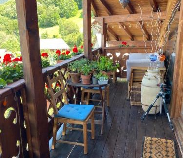 BathroomBody soap, Free toiletries, Shared bathroom, Hairdryer, Private bathroom, Shower, Toilet, TowelsOutdoorsBalcony, Outdoor dining area, Patio, Outdoor furnitureKitchenCoffee machine, Stovetop, Oven, Wine glasses, Refrigerator, High chair, Kitchen, Dining table, Kitchenware, Microwave, Toaster, Cleaning productsGeneralTile/Marble floor, Smoke Alarm, Trash cans, Private entrance, Ironing facilities, Fire extinguisher, Heating, Hardwood or parquet floorsLiving AreaSitting area, Dining areaBedroomLinens, Wardrobe or closet, Childrens' cribsViewMountain viewAccessibilityUpper floors accessible by stairs onlyRoom AmenitiesFold-up bed, Socket near the bedEntertainment & Family ServicesBooks, DVDs or music for childrenFood & DrinkBottle of waterCleanliness & disinfectionHand sanitizer |