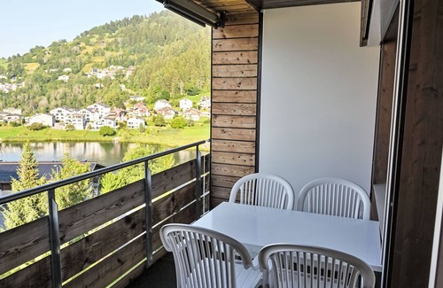 "La Prada Wohnung 119", 2-room apartment 45 m2 on 2nd floor. Cosy furnishings: living/dining room with 1 sofabed and cable TV (flat screen). Exit to the balcony. 1 small room with 2 beds (90 cm, length 200 cm). Alcove with curtain with 1 fold-away bed (90 cm, length 200 cm). Open kitchen (3 hot plates, oven, toaster, kettle). Shower/WC. Large balcony, south facing position. Balcony furniture, box-room. Beautiful view of the lake, the mountains, the countryside and the resort. Facilities: Internet (WiFi, free). Garage space n 119 at the house. E-charging station. Please note: non-smokers only. Maximum 1 pet/ dog allowed.