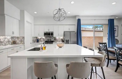 Our three-bedroom home offers a saltwater pool/spa, large putting green with chipping pad, gas BBQ, firepit with mountain views, high-speed internet with Spectrum TV in every bedroom and everything else you need for a comfortable stay. As a guest of our vacation home, you'll have access to all community amenities, including the community pool/spa, weight room/fitness center, outdoor space with BBQ area, and bocce ball.
