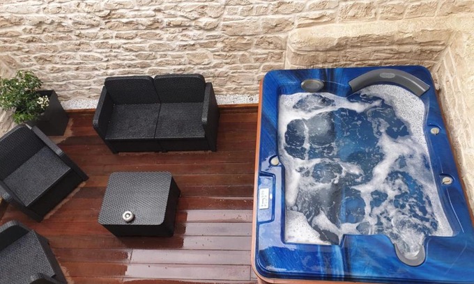Food & DrinkTea/Coffee maker, Wine/ChampagneBathroomShower, Hairdryer, Toilet, Private Bathroom, Bathtub or shower, Towels, Toilet paper, Walk-in shower, Body soapMedia & TechnologyTV, Flat-screen TV, Blu-ray playerGeneralAir conditioning, Heating, Private entrance, Tile/Marble floor, Trash cans, Smoke Alarm, Key accessActivitiesHot tubKitchenRefrigerator, Microwave, Kitchen, Electric kettle, Kitchenware, Oven, Stovetop, Toaster, Cleaning products, Coffee machine, Wine glassesOutdoorsPatio, Terrace, Outdoor furnitureLiving AreaSofa, Dining areaBedroomLinensAccessibilityUpper floors accessible by stairs onlyBuilding CharacteristicsDetached, Semi-detachedEntertainment & Family ServicesBoard games/puzzlesRoom AmenitiesSofa bed, Socket near the bed, Non-feather pillowViewInner courtyard viewPhysical distancingSingle-room AC for guest accommodation |