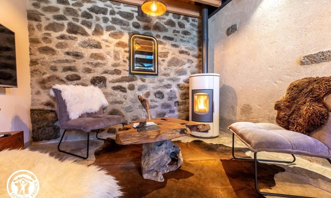 ALL INCLUSIVE ! Staying at "La Renardière" means living an unforgettable experience in the heart of the Auvergne Volcanoes Natural Park! You will be enchanted by the warm and cozy atmosphere of this stone cottage. Everything here has been designed for your comfort: quality of materials: wood and stone, furniture, equipment… not to mention the pellet stove for diffused heat. The advantage of this accommodation is also the access to the owners' pond which is located just above. You will enjoy a space with lounge for relaxation, barbecue, garden furniture. The cottage is attached to the back with the owners' house (so you have no vis-à-vis), it is composed on the ground floor: beautiful living room with integrated kitchen of very good quality, dining room and TV lounge area. On the first mezzanine floor: a bedroom with 1 bed 160, a bathroom / wc and a sleeping area with 1 bed 120. For your comfort, everything is included: the beds will be made on your arrival, the towels are provided. provided, cleaning and heating are included. The owners offer you rental snowshoes for beautiful hikes in the snow. Departure for hikes from the lodge or at the Col de la Croix Morand 5 minutes by car: very beautiful hikes, by bike or VVT (bike room available at the lodge). Do not miss: Lake Chambon, lakes of Guéry and Servière 15 minutes for fishing, the Chaudefour Valley: majestic cirque where you can hike, Besse-et-Saint-Anastaise which is a medieval village, Saint- Nectaire and its church which is one of the five major buildings of Auvergne Romanesque art, the castle of Murol, La Bourboule 20 minutes away or even in winter: downhill skiing at Mont Dore, cross-country skiing or snowshoeing at Col du Guéry. Shops and services 4km away. 1 animal accepted with prior agreement of the owner.