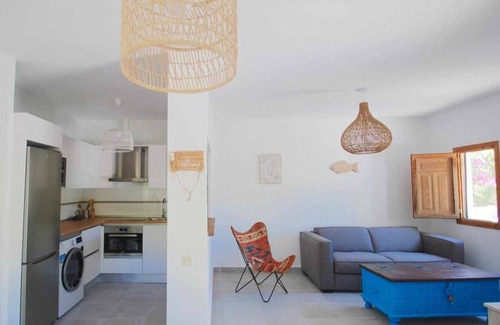 The house is located in a privileged place, in a quiet and central area of the town of Rodalquilar, next to a palm grove. It has two bedrooms, a living room with kitchen, a bathroom, a large shower, an exterior patio, an interior patio and a large solarium on the top floor with beautiful views of the Rodalquilar valley. The house is newly renovated and furnished.