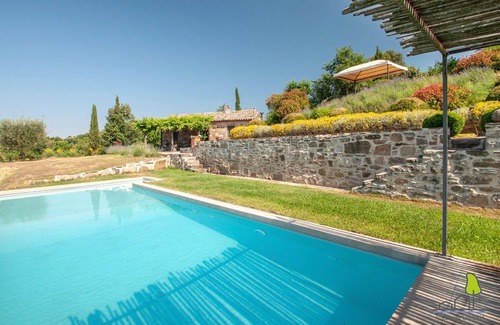 This holiday villa offers excellent views, total privacy, healthy fresh air, a private pool, and a tasteful interior design that is unique in Umbria. The infinity pool is 4 by 10 meters and has a pergola to one side for the necessary shade on hot summer days.