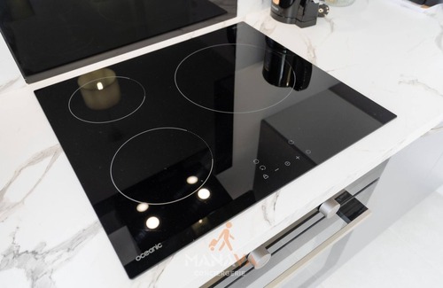 Oven, microwave, stove, fridge-freezer, dishwasher, Nespresso machine, toaster, kettle, dishes, utensils, spices… Everything you need to cook like home.