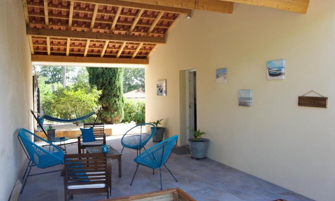 Featuring a garden, LACADUCEE offers accommodations in Peujard. This property offers access to a balcony, free private parking, and free Wifi. Outdoor seating is also available at the vacation home. Offering a terrace with garden views, this vacation home also features a flat-screen TV, a well-equipped kitchen with a dishwasher, an oven, and a microwave, as well as 1 bathroom with a shower and a hair dryer. For added privacy, the accommodation has a private entrance and soundproofing. Guests can also relax in the shared lounge area. Matmut Atlantique Stadium is 18 miles from LACADUCEE, while Bordeaux Expo is 18 miles from the property. Bordeaux–Mérignac Airport is 25 miles away.