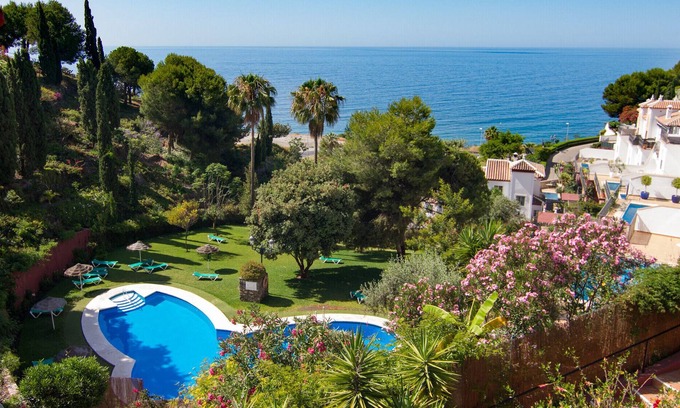 "Ladera del Mar" is a spectacular urbanization built on a hillside, next to the Mediterranean Sea, hence its name. Its magnificent location, and its architectural typology, combined with lush gardens, make it a reference. It is located in a very quiet residential area, to the West of the town and facing the sea, an ideal place to enjoy a relaxed vacation, and yet you are just a few minutes drive from the centre of Nerja. The beaches are about 500 meters walk away. The urbanization has a great community pool, SUMMER 2020 IS THE POOL CLOSED DUE TO COVID-19, and next to it, a magnificent lawn area where you can sunbathe. Easy parking on the streets besides the properties on the complex.