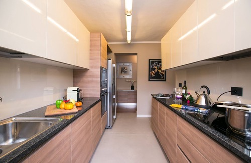 The luxury lake view accommodation is immaculately presented throughout, and boasts a stylish integrated Kitchen, a spacious open plan Living and Dining room with large flat screen TV and a fabulous lake view terrace with a chic sitting area. Three luxury Bedrooms (3 with full En-suite Shower rooms) provide a boutique lake view ambience too, whilst one offers added flexibility for family groups staying (featuring a Double bedroom area with an adjoining room with modern bunk beds). Equipped with air-con to the bedrooms and private laundry facilities too, the apartment really offers that home-from-home comfort and convenience.