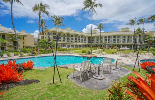 Keep it simple at this peaceful at this Resort Hotel Room. A lovely view from private lanai overlooking lagoon and mountains beyond at this popular kauai's East side Oceanfront Resort location. An easy 5 minute drive from the LIhue airport, an ideal resting spot to end days spent exploring this magical island. Location is equidistant from Kauai's North Shore and Sunny Southside, the resort has a 5 natural sea mineral swimming pools, 2 hot tubs, a fire pit, 3 restaurants, and fitness room.
