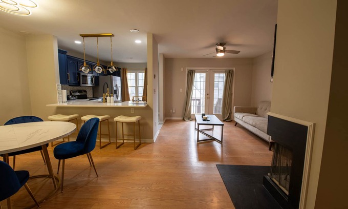 Welcome to Laid in Luxury—a modern 2BR/2.5BA townhome with a private garage. Relax in designer blue-and-gold interiors, stream on the smart TV, and wake up to a stocked coffee bar. Fast Wi-Fi, fully equipped kitchen, and in-home washer/dryer. Self check-in. Central to Charlotte: ~10 min to UNCC, ~15 min to Bank of America Stadium, dining, breweries, and Uptown. Perfect for game days, business trips, and weekend escapes.