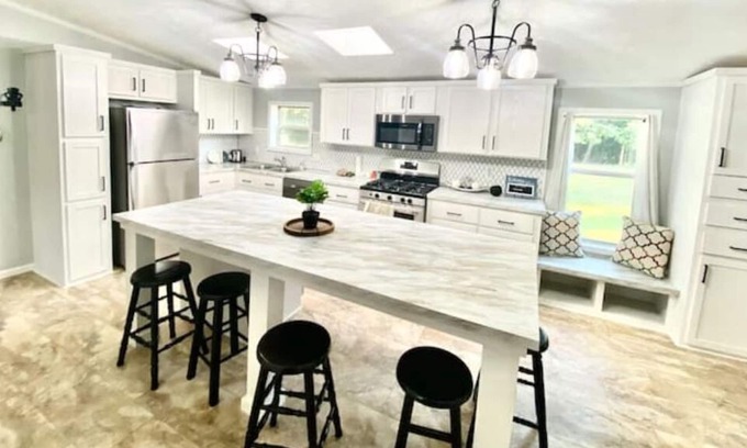 The Home: Updated three Bedrooms (1 Queen, 1 Full, 2 twin), two full bathrooms, kitchen with large island, separate living room and family room. Also includes queen size sofa-sleeper, flip-out love seat, and optional queen size air mattress.