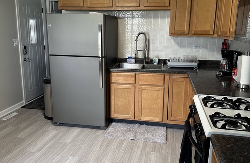 Have fun with the whole family at this stylish home. Everything has been recently renovated. This is directly across from a beach, which is perfect for winter and summer activities. We supply 2 kayaks, fishing poles (Bring your fishing boat)This place has 3 bedrooms, and a total of 5 beds. There is also a lot of dining and shopping, nearby. This is a hidden gem and brand new to VRBO.