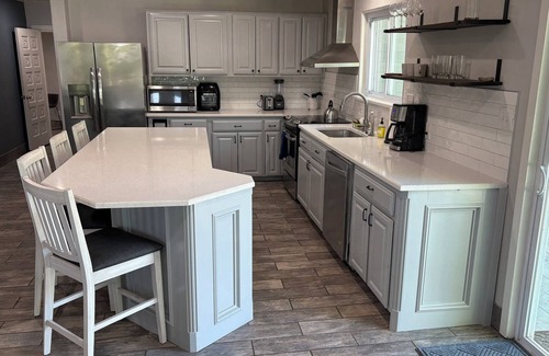 Family retreat 200 yards from the Lake Texoma shoreline! Cozy 3 bed, 2-bath home sleeps up to 8 (4 adults , 4 kids). Wake to stunning sunrise views over the water — whether you’re an early riser or a night owl, don’t miss this breathtaking start to the day. Enjoy nearby beaches, hiking trails, and swimming spots. The spacious, fenced backyard is perfect for outdoor activities (all ages) or fireside chats with s’mores. Ideal for family getaways. Small dogs welcome, no giraffes!