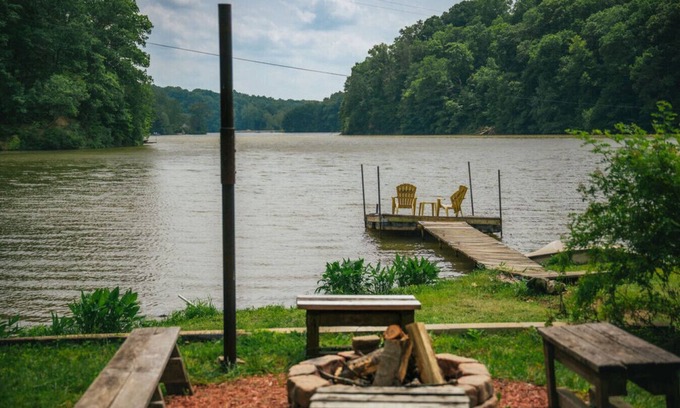 Take a break from the hustle and bustle of city life & unwind at this tranquil getaway. Step outside onto the deck or private dock for breathtaking views of the lake just steps away from your door. perfect for relaxing and enjoying the serene atmosphere. indulge in some delicious s'mores over the firepit for the ultimate outdoor experience.