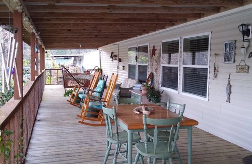This 3 bedroom 2 bathroom home is located in the quaint little lakeside community of Plum Ridge. It's nestled on a half acre lot right on the edge of Lake Sam Rayburn. With over 200 ft of direct water access you can fish, swim, kayak, park your boat, or just sit, relax, and enjoy the view . From the main living area there are 180 degrees of unobstructed views of the lake. Lake views can be admired from inside the home or on the very large covered back porch that runs the entire length of the house. The lake front porch is host to several rocking chairs, an outdoor eating area, and outdoor grill, Other outdoor features available for use are a fenced in backyard for your little furry friend, covered vehicle parking, covered boat parking, a fire pit with chairs. and a fish cleaning station. Also stored under the carport at the end of the driveway is a kayak for adult use with paddle and two adult life vests. Inside the home you have access to a fully furnished kitchen with all the major appliances, and yes this includes a dishwasher. Directly off the kitchen is a laundry room with a full size washer and dryer. Wi-fi and satellite television is available in the main living area as well as in all three bedrooms. The home has central A/C , ceiling fans and heating to keep you comfortable while indoors. Another great feature included with the home is an automated backup generator. This is very handy in the unfortunate event of the lights going out. If you are looking for a place to get away from it all and enjoy all the things the lake has to offer come enjoy your stay here at our lakeside getaway. Please note: Owner is not responsible for accidents on property including any water activities and use of the kayaks. We also urge guests to watch their step as the changing lake levels can cause uneven terrain and damage to trees.