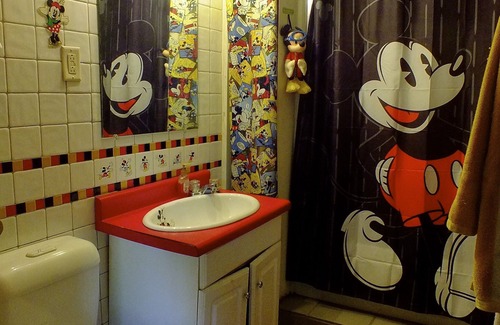 This whimsical Monroe County getaway comfortably sleeps nine with a queen bed on the main floor, a queen, single bed and a trundle in the upstairs master bedroom,and a queen and single bed in the other upstairs bedroom.