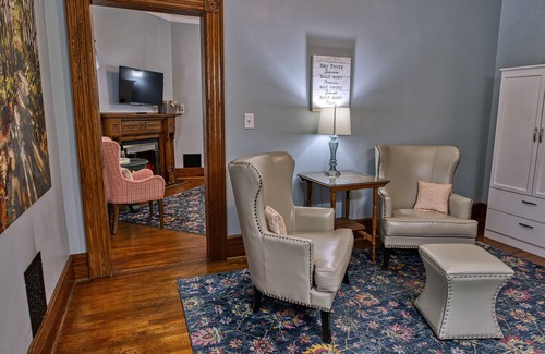 Welcome to Rockwell Falls Inn—a unique, charming, and historic retreat where you and your large group can enjoy exclusive access to the entire property. Perfect for a family reunion or large group getaway. With 12 beautifully appointed rooms across two buildings, we can accommodate up to 24 guests for an unforgettable stay. Each of the rooms have their own private bathrooms and a fireplace. Seven of the rooms have private Jacuzzis and four of the rooms have private balconies. One room is ADA accessible.