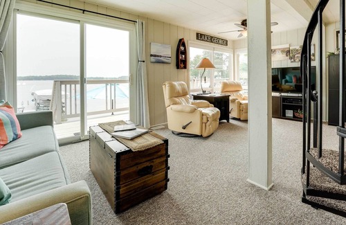 Live the lakefront life at this 1-bedroom+loft, 1-bath Lake George vacation rental! Complete with a private deck, a grill, and stunning water views, this Fremont cottage is perfect for lake lovers and water sport enthusiasts. This retreat is also under 1 mile from the nearest marina and 5 miles from Lake James in Pokagon State Park. When you're not exploring the parks, boating on the lakes, or sipping wine at a nearby vineyard, kick back on the furnished patio to keep the relaxation going!-- THE PROPERTY --Lakefront Location | Private Deck | < 1 Mi to MarinaBedroom: Queen Bed | Loft: 3 Twin Beds | Living Room: Sleeper SofaOUTDOOR LIVING: Furnished patio, private dock (in the water from May-September), charcoal grill (charcoal not provided), fire pit (wood not provided), 2 kayaks, float raftsINDOOR LIVING: 2 Smart TVs, game system w/ provided games, kids' toysKITCHEN: Cooking basics, stove/oven, refrigerator, microwave, dishwasher, dishware & flatware, coffee maker, toaster, spicesGENERAL: Free WiFi, linens/towels, central A/C & heating, in-unit laundry, hair dryer, iron/boardFAQ: Lake wake hours (10:00 AM-6:30 PM), stairs required to access & addt’l stairs for water, Ring doorbell (facing front entry)PARKING: Driveway (3 vehicles)-- THE LOCATION --GET OUTSIDE: Lake George Marina (0.9 miles), Beechwood Nature Preserve (3 miles), Failing Lake (4 miles), Wing Haven (5 miles), Pokagon State Park (5 miles), McClue Nature Preserve (5 miles), Wild Winds Buffalo Preserves (7 miles), Ball Lake Nature Preserve (18 miles)LOCAL HIGHLIGHTS: The Shops at Fremont (2 miles), Briali Winery (2 miles), Satek Winery (3 miles), Laralyn Castle (3 miles), Pokagon State Park Toboggan Run (5 miles)TEE TIME: Lake James Golf Club (6 miles), Glendarin Hills Golf Club (7 miles), Zollner Golf Course (10 miles), Hidden Valley Golf Course (14 miles)AIRPORT: Fort Wayne International Airport (64 miles)-- REST EASY WITH US --Evolve makes it easy to find and book properties you’ll never want to leave. You can relax knowing that our properties will always be ready for you and that we’ll answer the phone 24/7. Even better, if anything is off about your stay, we’ll make it right. You can count on our homes and our people to make you feel welcome--because we know what vacation means to you.-- POLICIES --- No smoking- No pets allowed- No events, parties or large gatherings- Must be at least 25 years old to book- Additional fees and taxes may apply- Photo ID may be required upon check-in- NOTE: Please note the lake has wake hours from 10:00 AM to 6:30 PM- NOTE: The property requires several stairs to access and additional stairs to get down to the water- NOTE: The private dock is in the water from May through September- NOTE: Charcoal is not provided for the charcoal grill. It is recommended that you supply your own- NOTE: Your safety matters. This property features a Ring doorbell device with an exterior security camera facing the front outdoor entry. The camera does not look into any interior spaces. The camera actively records video when motion is detected by the device (including devices linked to the camera such as the alarm system’s motion detector) or when the video doorbell button is pressed