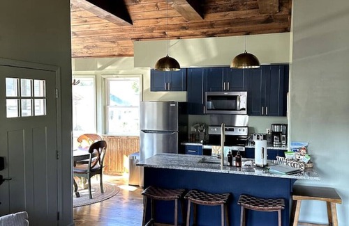 Newly renovated, fully furnished, and impeccably designed, this two-bedroom, two-bathroom cabin is one of three Beach Road Cabins conveniently located on the southeast edge of Lake George in a quiet residential enclave that is a short walk from Million Dollar Beach, Usher Park, Lake George Village, and popular restaurants.