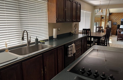 55" TV with DVD player and lots of movies on hand, karaoke player and board games to entertain. Kayaks available as well. Washer and dryer in oversized utility room.