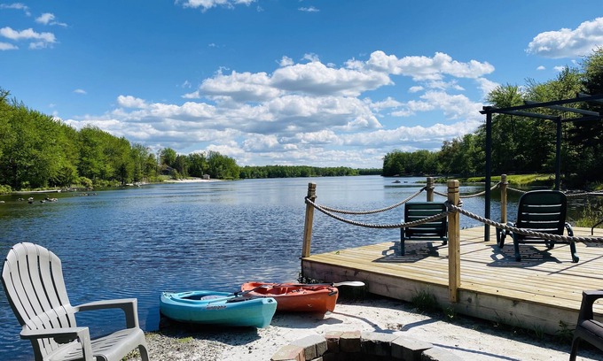 Enjoy mornings kayaking from a private beach or sunsets while roasting marshmallows on a lakeside fire pit. Large lakeside dock with table and chairs. Ramp to launch the kayaks. Fishing is possible from the dock but it is shallow so best to take the kayaks out for fishing. Enjoy winter days skiing at your local mountains and then come back to a cozy home and warming up your toes near a fireplace.