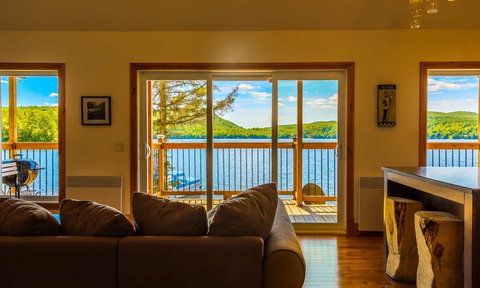 Cottage located directly on Lake Labelle with the best views in summer, and in winter. The property comes with a private spa, indoor fireplace, direct access to the lake with private dock, a large back yard with fire pit and a deck (with BBQ) to enjoy year round.