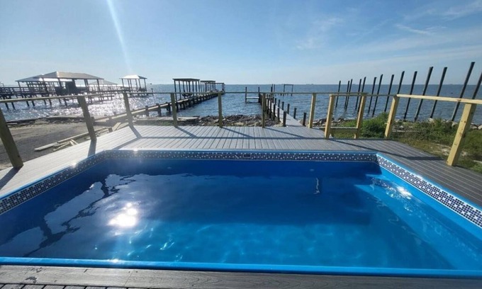 Lake Leisure is the perfect place to relax, unwind, fish, crab and just enjoy Lake Catherine. The house provides plenty of space with 3 bedrooms, 2 bathrooms, large living room and kitchen. The first bedroom has a king size bed, queen sofa sleeper and en-suite bathroom with a bathtub, separate shower, two vanities and a large closet. The second bedroom has a queen bed and the third has a full over full bunkbed and futon. The pool overlooks the lake and there is a large back porch and pool deck.