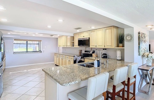 Relax with the whole family at this peaceful lake front home. Bring your own boat and launch from the onsite ramp this is a DESIGNATED SKI LAKE! Escape the hustle and bustle and unwind at Lake Wood. Our spacious 4-bed, 3-bath lake house offers the perfect blend of comfort and tranquility. Comfortably sleeping 8 you can bring all the family! Recently and lovingly renovated, come and enjoy our vacation home and make some great memories. All whilst being just 20 minutes from Tampa Airport.