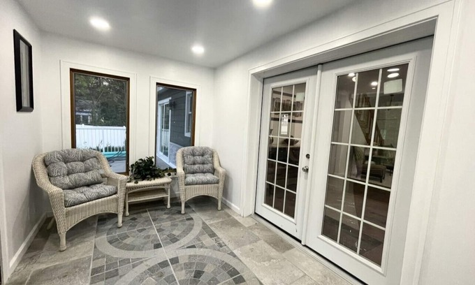 Your cozy getaway awaits in Racine at this lovely house. Features 4 well appointed bedrooms. Main BR features a huge King size bed with new cooling memory foam mattress. Main BR has a private balcony overlooking Lake Michigan. There's plenty of space for all guests. Enjoy the convenience of 3 full bathrooms, all equipped with showers, hair dryers and other essentials. Whether you're relaxing in the stately living room with 14' fireplace, or cooking in the fully equipped kitchen, this welcoming retreat has everything you need for a wonderful stay. We look forward to welcoming you to our place.