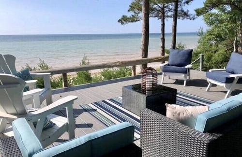 Enjoy Stunning views, Private beach access, observation deck and a large yard for games and relaxing. A new sunset every night! Main floor living with open floor plan. Lower level with extra living room and, with sleeping area and full bath. Laundry is on the main floor. Privacy, beauty, and plenty of room to spread out. Memories are waiting to be made at this beautiful Lake Michigan destination!