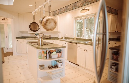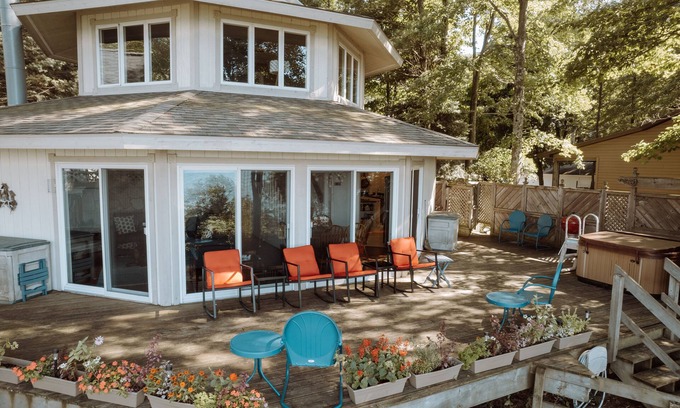We are excited to add another Lake Michigan cottage to our vacation rental portfolio- The Lighthouse. Built to resemble a lighthouse, the octagon shape facing the water provides stunning views from the master suite, living room, and dining room. Watch freighters and sailboats from inside the house, or from the amazing no-barrier deck. 69 steps lead down to your private beach. Prepare food and drinks in the newly remodeled and fully stocked gourmet kitchen designed for entertaining. A separate family room provides space to spread out. Three bedrooms each with private bath sleep up to 8 guests. A private basement bonus room has two futons and ping pong table.