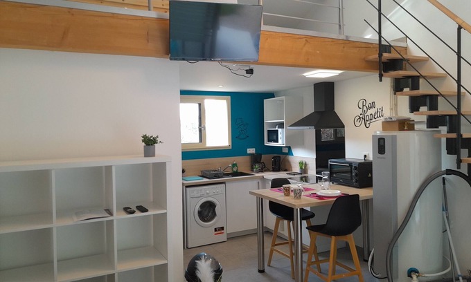 Come and relax in this bright, cosy, quiet and elegant new studio + mezzanine (2024) measuring 26m² on the ground floor, with a mezzanine sleeping area to free up the ground floor.