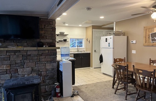 Year round fun on Pokegama Lake, within the Chetek Chain of Lakes. Located along a "no wake zone", you can enjoy watching the boats idle by from the lakeside fire pit or the 4-season room. There are no steps down to the shoreline where there are two private docks and swimming platform. Quick access to several bars/restaurants and less than 2 miles to downtown Chetek. Newly remodeled. 2 bedroom and sleeper sofa in living room. Pets welcome. During peak season, only Sunday to Sunday rentals will be accommodated.