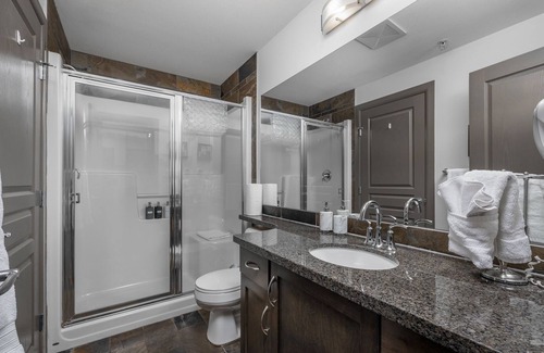 This spacious and cozy 3 bedrooms condo located on the fourth floor facing the quiet inside of the resort, equipped with two full bathrooms attached to each bedroom on each side of the living room, spacious kitchen with granite counter, classic living room, in-suite laundry and free underground and street parking.