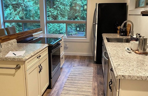 The Lake Samish Cabin Loft is set in the trees, adjacent to Lake Samish. We do not have lake access but we do have several public access options to the lake within minutes from our house, where you can kayak, paddle board, etc. The main house is also located on the lot and the property is shared. We will give you your privacy and space, but you may see us coming and going.