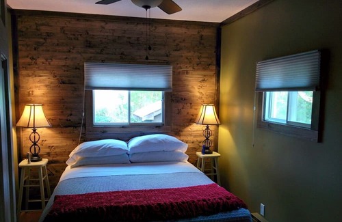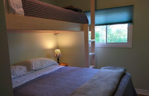 • Three bedrooms – One with a Queen bed, one with a single bunk bed above a double bed, one with two single beds