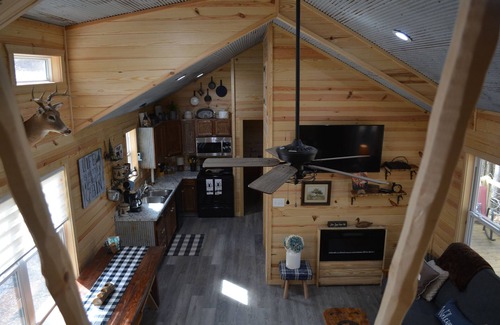 The cabin is designed and decorated to help you relax. It features 2 bedrooms with king beds as well as a sleeping loft with a full bed. (The sleeping loft is ideal for kids age 5 and up.) Two full size futons in the living room for additional sleeping space.