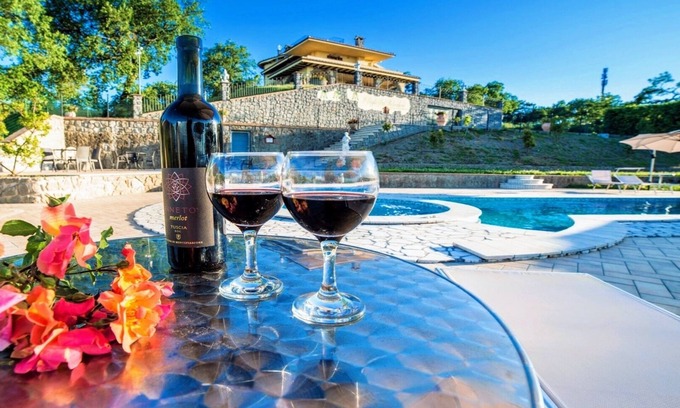 A leisure pool, a hot tub, expansive grounds and a huge detached luxury villa, overlooking Lake Bolsena.