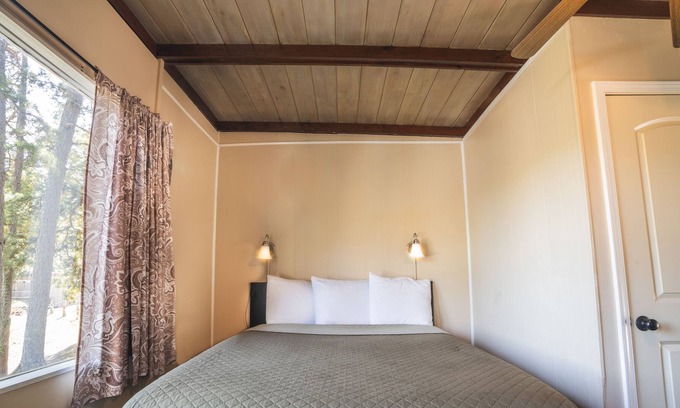 Our Hotel Room Is sitting Lake front on our property and over looking our beautiful Safe Harbor Marina. The large guest room has two queen beds, satellite TV, microwave, refrigerator, and coffee pot. The hotel is centrally located on the property and conveniently located near our swimming pool, a small playground, Brady Mountain Grill , and camp store. We also have a basket ball court and disc golf course just up the way.