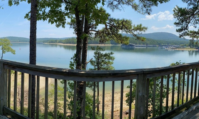 Lake view two bedroom, two bath loft, log-sided cottage with private hot tub overlooking Lake Ouachita. by RedAwning | Cottage in Mount Ida
