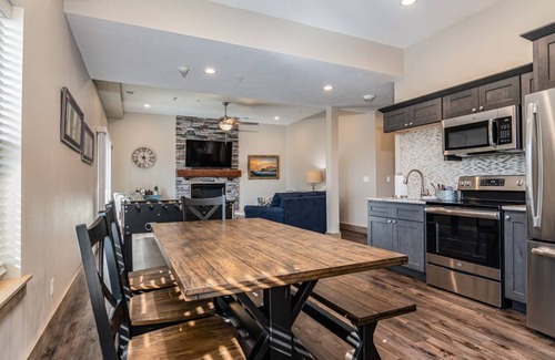 This lovely retreat boasts 5 bedrooms (all with ensuite baths plus an extra half bath), 48-inch TVs in all the bedrooms, and 55-inch TVs in the living rooms. There is a covered patio with fire pit. Relax and enjoy in the entertainment area, featuring a foosball table and Playstation4 and stand up arcade game with over 100 games and board games