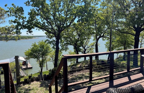 Relax with the whole family at this peaceful Lakefront getaway! Enjoy this three bedroom/two bath lake cabin overlooking Lake Nocona. Fish or swim at the covered dock, kids can kayak or jump from the upper platform. Cook-out on the back deck as you toast to a beautiful sunset or enjoy the sky full of stars as the day comes to an end. This is the perfect retreat for families or friends to unwind and make memories!