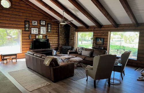 Lakefront 3 bedroom/2 bath Log Cabin with Dock, Deck & Amazing Sunset Views! | Cabin in Nocona