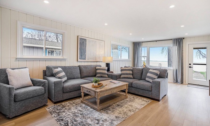 Lakefront 3-bedroom cottage on Sand Point with AC, WiFi, King bed, Firepit is located in Saginaw Bay. Lakefront 3-bedroom cottage on Sand Point with AC, WiFi, King bed, Firepit provides accommodation, featuring TV, View, Balcony/Terrace, among other amenities. This Cottage features TV, View, Balcony/Terrace, to make your stay a comfortable one.
